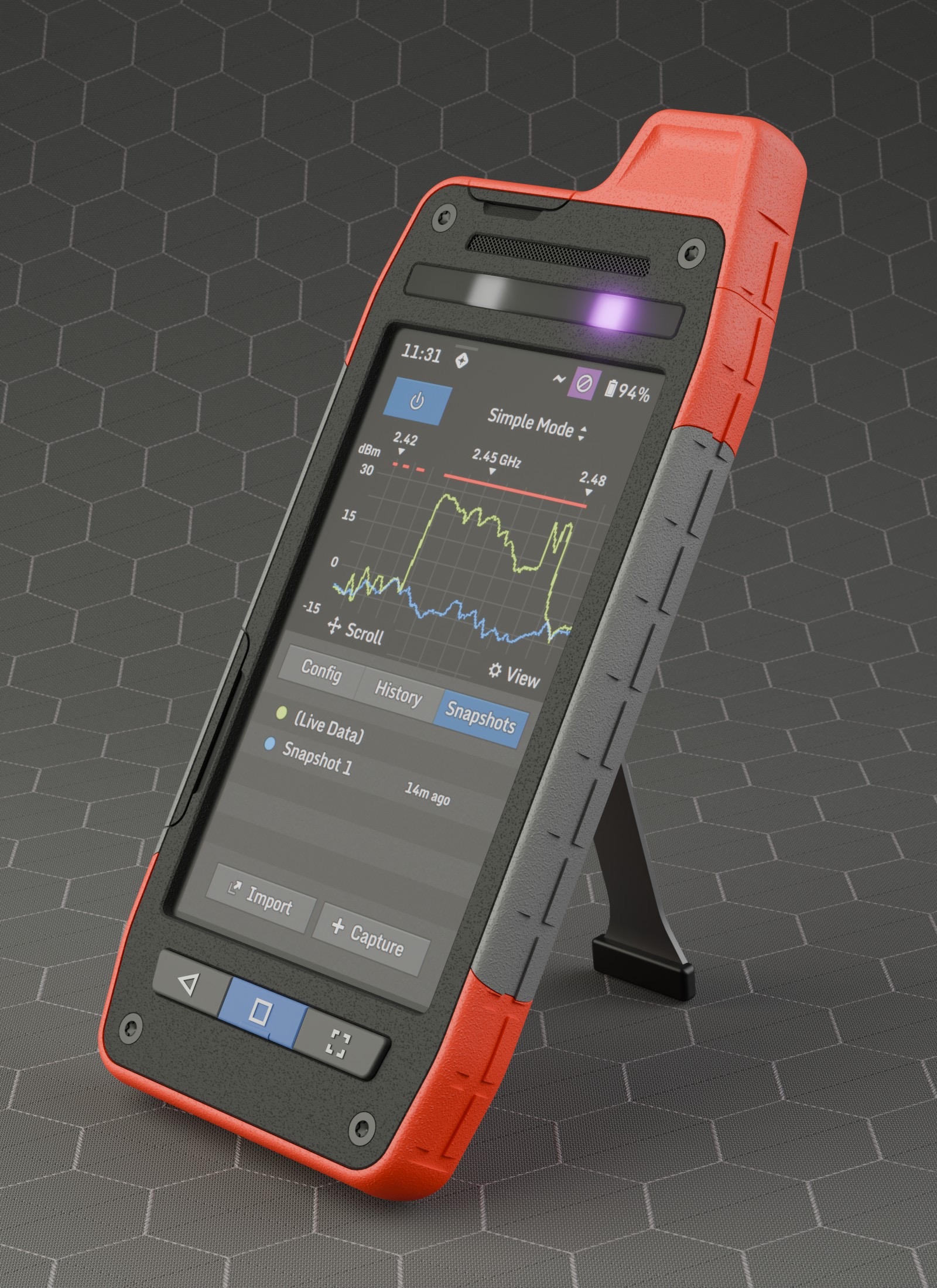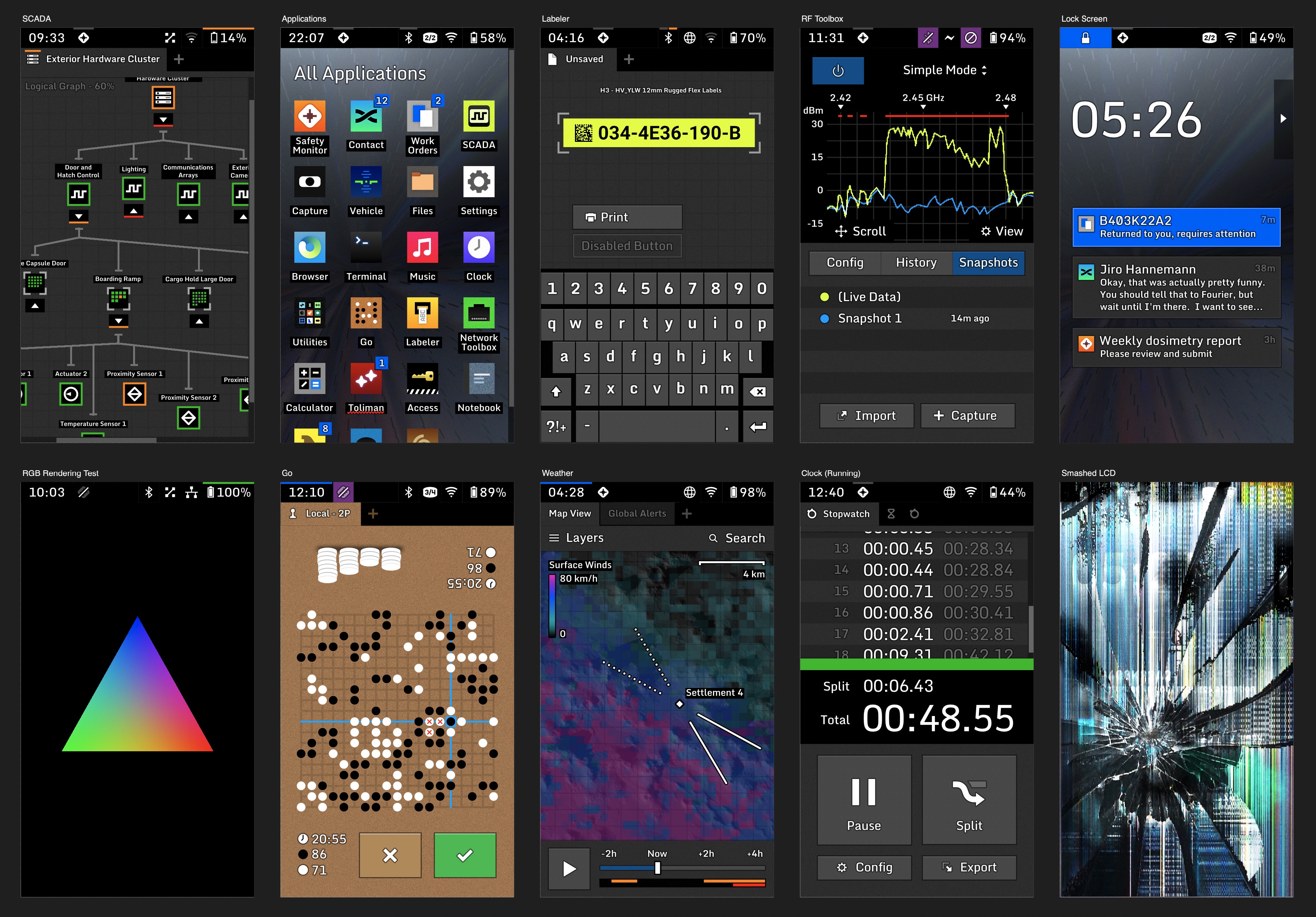 Second, I really wanted to apply some of the stuff I was learning about physical electronics at the time and attempt to build a replica of this device. Raspberry Pi single-board computers and small touchscreen LCDs were cheap enough and easy to obtain, and I figured I could emulate the light bar with a couple of NeoPixel LED strips. Unfortunately, I learned the hard way that assembling stuff from generic parts can't get even remotely close to the economy of real hardware that's engineered and integrated together. (After all, there's a very good reason why R&D budgets are massive.) On the verge of giving up, I discovered a category of ESP32 microcontroller boards with a tightly integrated, much thinner display, which looked a lot more promising. I bought one and learned how to flash it...only to discover that its pixels weren't square, making it near-useless for displaying my mockup UI! With that last straw, I cut my losses and shoved all that stuff in a box. One of these days I'll keep fooling around with it, but right now I have much bigger fish to fry.