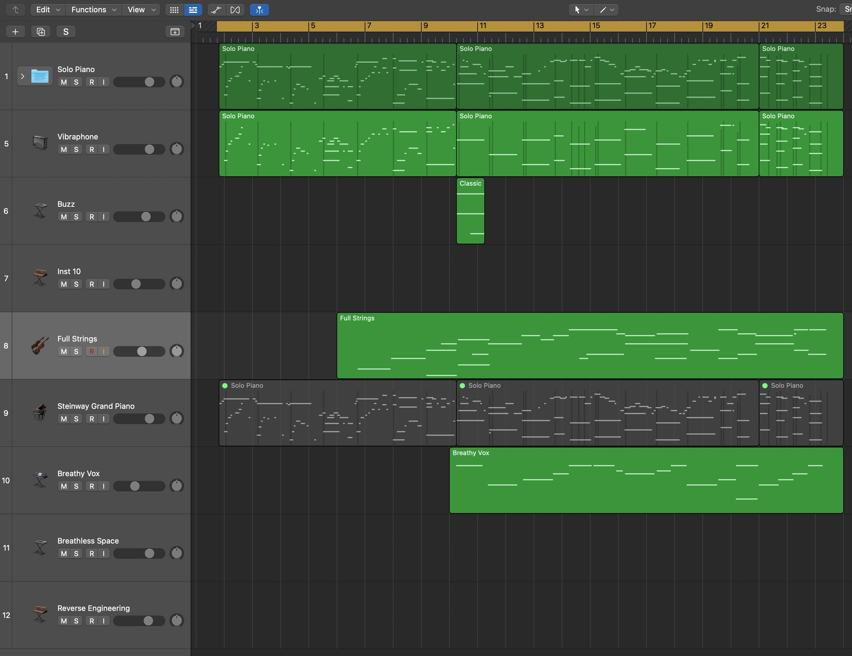 I continued dabbling with this stuff for a little while later, playing with sounds but never finding anything satisfying enough to properly develop or finish. It wasn't until much later that I finally realized I had never shaken the mindset of classical solo piano, but by then I had moved on to other projects.