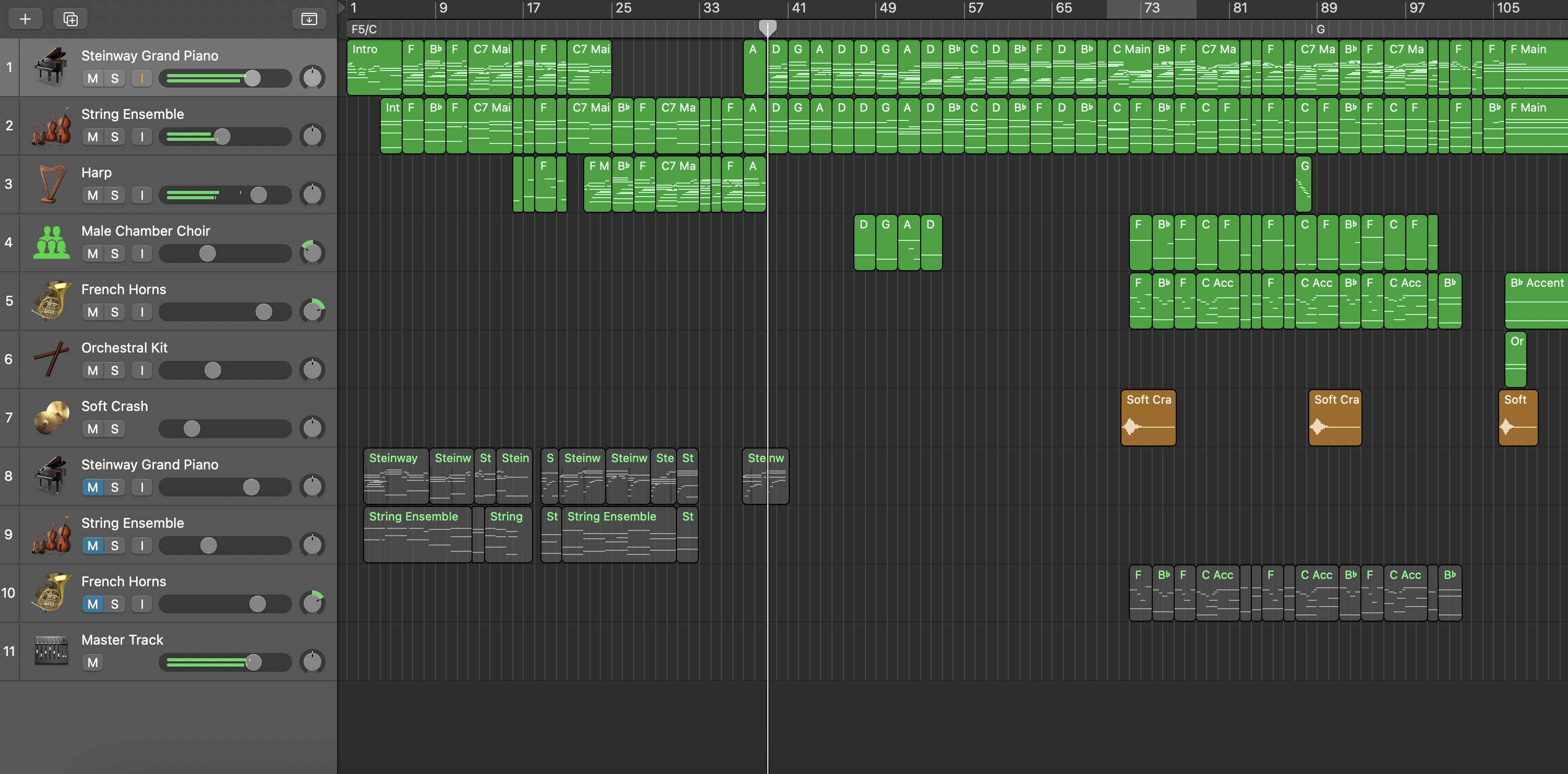 A few years later, I shelled out the cash for Logic Pro because I wanted to try making stuff without the training wheels of GarageBand. Out of all the melodies I had composed as a child, the final one was by far the best fit for a high-energy electronic arrangement. I didn't give my compositions names, so I finally had to pick one. Further, the original "Composition #7" was actually quite short, so I extended it with a new middle section and a reprise of the original melody.